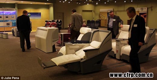 參觀(guān)者親身體驗(yàn)波音787的座椅