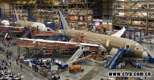 碳纖維合成技術(shù)已有數(shù)十年的歷史,自20世紀(jì)80年代以來(lái),廣泛應(yīng)用于試驗(yàn)飛行和軍事航空領(lǐng)域。不過(guò),波音787是第一種主要采用碳纖維材料制造的商業(yè)客機(jī):70%機(jī)體使用合成材料制造。碳纖維絲被植入樹(shù)脂中,然后將一層層的碳纖維夾在別的材料之間,以便令碳纖維絲處于不同方位。利用這種技術(shù)制造的材料既輕又堅(jiān)硬——強(qiáng)度至少是鋼材的四倍。
