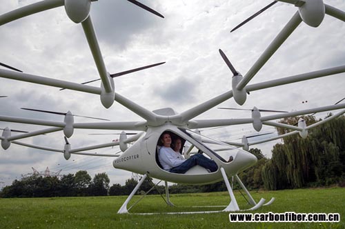Volocopter 從外形上就能看出它和目前很多玩家玩的四旋翼直升機有相似之處,不同的是它的尺寸和正常直升機差不多,雙人駕駛艙頂部伸出6根支撐臂,然后每根支撐桿再延伸出兩個小支撐臂,三個節點使用了3臺電動旋轉機翼,這樣一共18個旋轉機翼。所有馬達由6塊電池驅動,目前可以在空中飛行20分鐘。E-Volo對Volocopter 的設計標準是未來量產時可實現在2000米左右的高空中以100km/h 的速度巡航,并可達到一小時的飛行時間。