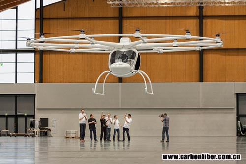 據E-vovo公司稱,這款飛行器——被稱為VC200——的新模型已經進行了“多次持續數分鐘的試飛”,包括距離達到22米(室內飛行所限)的幾次飛行。VC200采用了碳纖維材質,擁有18組獨立的發動機和旋翼,利用多組電池供能。