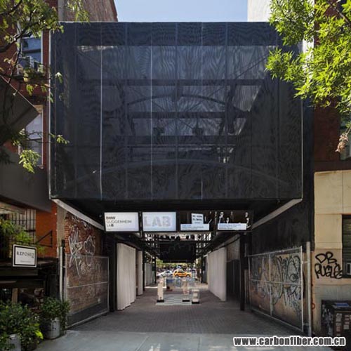 The first-ever building to have a carbon fibre structure is a mobile studio-cum-stage by Japanese architects Atelier Bow-Wow, which just opened in New York.