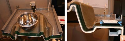 RTM和LRTM工藝也可以使用預制件和嵌件,當使用預制件時可得到高纖維體積含量的產品。LRTM工藝產品可以不上膠衣,只要一般的脫模蠟,產品就可脫模。但RTM產品如不用膠衣,脫模較為困難。