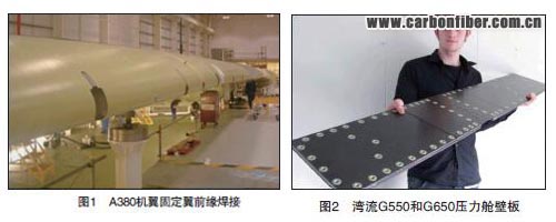 熱塑性復合材料主結構件是一個過去即有涉獵的領域。灣流G550和G650 飛機的壓力艙壁板(圖2)是一系列帶壓力成型加強肋的碳/聚醚酰亞胺。空客A400M 的駕駛艙地板就是用熱塑性復合材料制造的。最近,已經著手焊接主操縱面。新型灣流G650 公務機(JEC2010 創新獎得主)的方向舵和升降舵就是感應焊接的多肋扭力盒結構(圖3)。