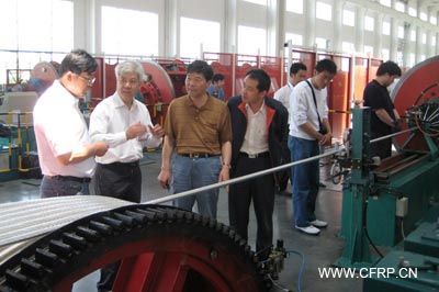 此外,還需要增韌改性,使所制芯棒具有韌性,而不是硬棒。否則不會(huì)通過(guò)放線(xiàn)滑輪試驗(yàn)。連續(xù)拉擠成型是成熟工藝。但制造碳纖維復(fù)合芯棒具有一定的特殊性。簡(jiǎn)單的工藝流程是:將碳纖維筒放在整理架上,單向(0°)集束,包覆玻璃纖維,浸漬環(huán)氧樹(shù)脂膠液,通過(guò)鋼制模口,以控制直徑,然后通過(guò)固化爐,固化成型。芯棒直徑可在0.19~19mm范圍內(nèi)調(diào)節(jié),拉擠速度可在2.7-18m/min范圍內(nèi)調(diào)節(jié)。