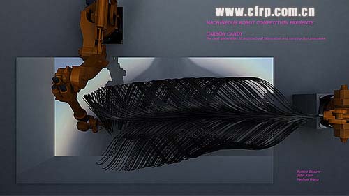 兩個(gè)日本產(chǎn)的Nachi機(jī)器人,首先是Demo的材料,是一種碳纖維-carbon fiber tape。可以在UV或是Heat下定型。