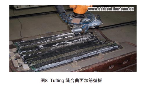 縫合技術是針對傳統(tǒng)工藝方法不足而開發(fā)的一種全新的技術。其原理是通過縫合手段,使復合材料在垂直于鋪層平面的方向得到增強,從而提高材料層間損傷容限。穿過增強織物厚度方向的縫線可以大大改善復合材料的層間性能。不僅如此,縫合技術應用于復合材料液體成型工藝還可提高制件成型的整體化程度。縫合纖維預制體可用于制造大型復雜結構復合材料構件,不僅克服了傳統(tǒng)復合材料層間強度弱、易分層的缺點,也使其抗沖擊損傷性能大大提升,而且減少了金屬連接件的數(shù)量,這樣既減輕結構質量,又減少制造總成本。 本文來自123