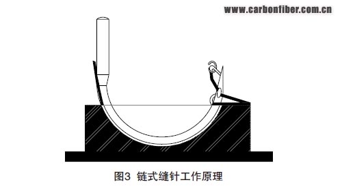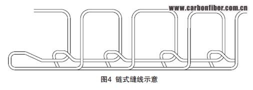 單面縫合是縫針從預制體的上面穿透制件進行縫合,而另一面沒有縫合單元,縫頭只是在被縫合件的單面完成縫合工作。復合材料常用的單面縫合主要有鏈式與Tufting 2種縫合方式 。